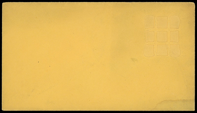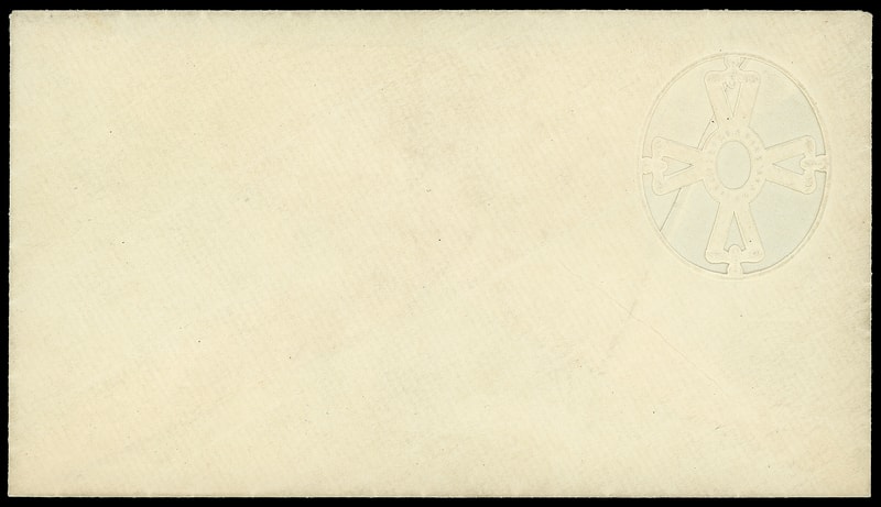 Leeds & Vaux Patent Envelope, unused Type 3 envelope with Maltese Cross pattern lattice embossed "Leeds & Vaux, 110 Broadway" at center; natural envelope split on reverse, Very Fine and rare unused entire.
