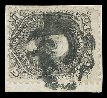 The creation and use of this fancy cancel in the Spring of 1866 coincided with the return of soldiers from the Civil War. Two different styles are recorded, one used domestically (one cover recorded) and a second type in the foreign mail department.Lot 1137