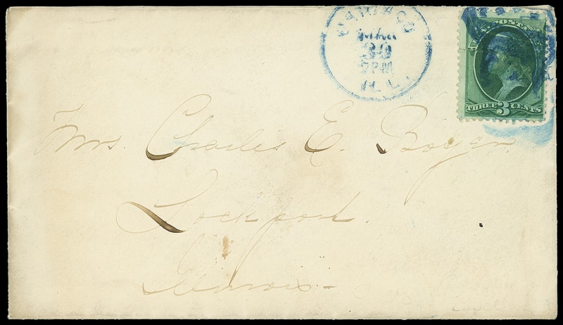ONE OF ONLY FOUR RECORDED USES OF THE ICONIC CHICAGO BLUE "POOL TABLE" FANCY CANCEL.