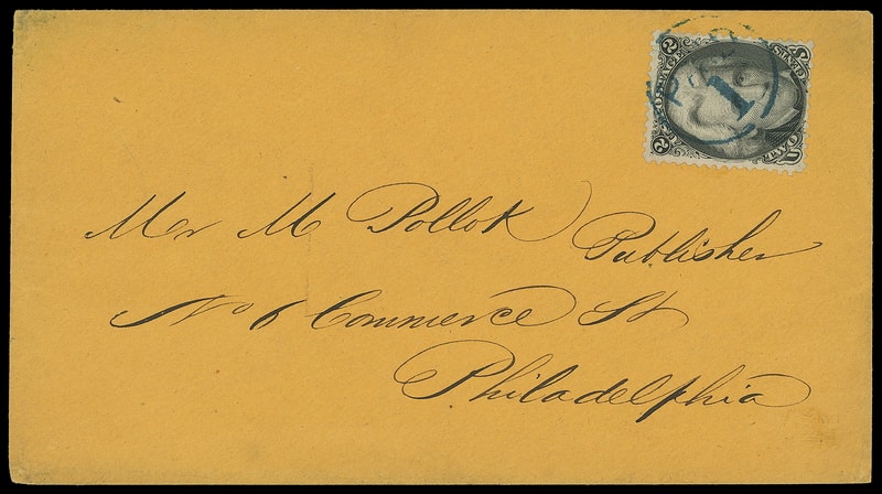 1863, 2¢ black, attractive centering and margins, tied by neat strike of blue "Paid 1" in circle on orange buff cover to Philadelphia Pa., fresh and Very Fine, ex-Faust .