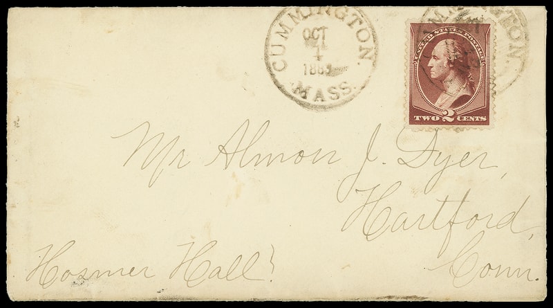 1883, 2¢ red brown, well centered, distinctive rich first-printing shade, tied by brownish "Cummington Mass. Oct 1, 1883" first day cds, additional strike adjacent on cover to Hartford Conn., Very Fine and choice first day cover; with 1982 AFDCS certicate.