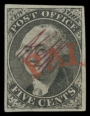 Scott No. 7 var. ◦ ◦ ◦ ◦ ◦ $610.Lot 1265