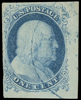 A BEAUTIFUL USED EXAMPLE OF THE 1851 IMPERFORATE 1¢ TYPE III FROM PLATE FOUR.Lot 1266