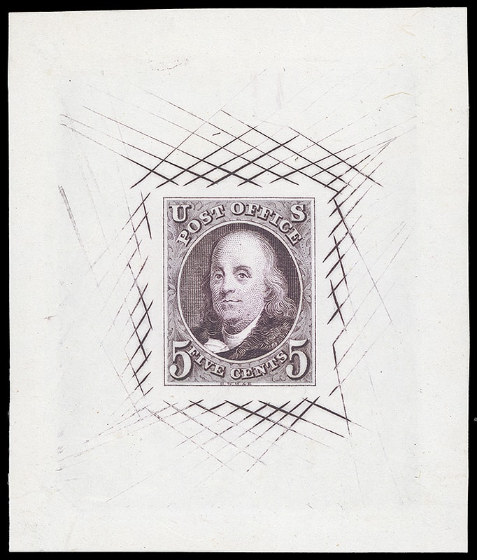 A RARE PROGRESSIVE DIE ESSAY IN BLACK OF THE ENTIRE DESIGN.Lot 1306
