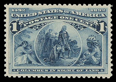 1893, 1¢ Columbian, o.g., never hinged, exceedingly well-centered, intense color on fresh paper, Extremely Fine; with 2011 P.S.E. certificate graded ( XF-SUP 95 ).