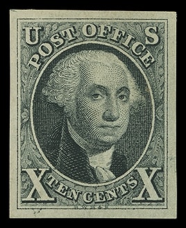 1847, 10¢ black, plate proof on India paper, large margins all around, Extremely Fine.