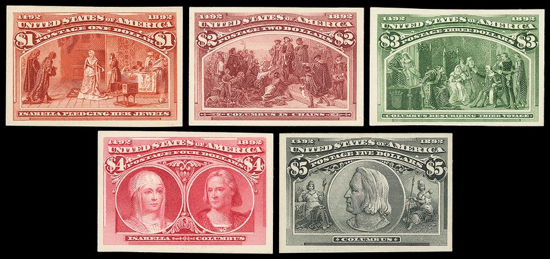 1893, Columbians complete, plate proofs on card, large margins, rich colors, Very Fine and choice set.