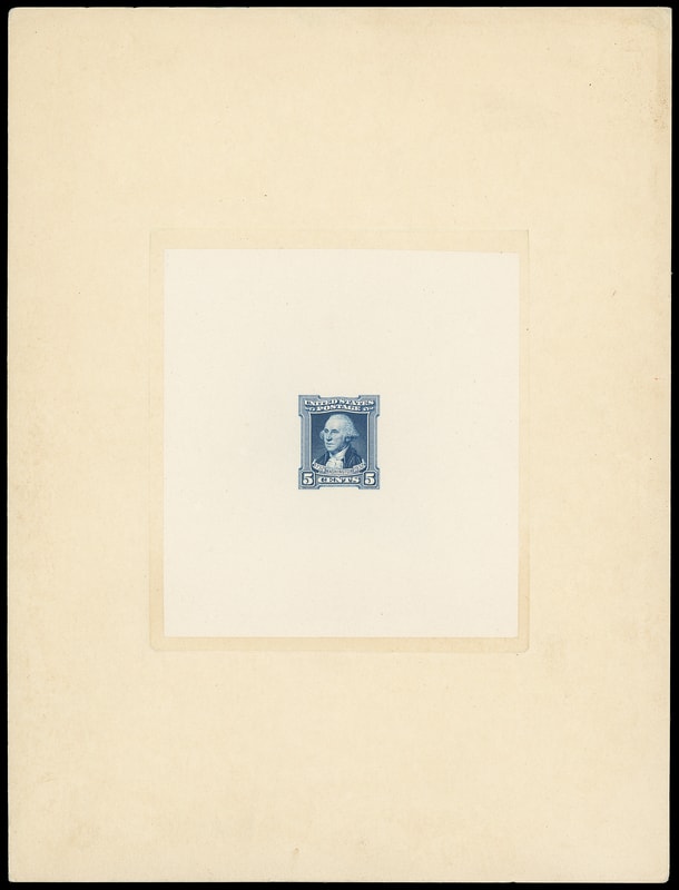 1932, 5¢ Washington Bicentennial, large die proof on India paper, die sunk on 154 x 204mm card, Very Fine.