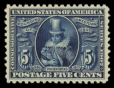 1907, 5¢ Jamestown, o.g., never hinged, exceedingly well centered, rich color with a detailed impression, Extremely Fine; with 1987 and 2007 P.F. certificates, latter graded ( XF 90 ).