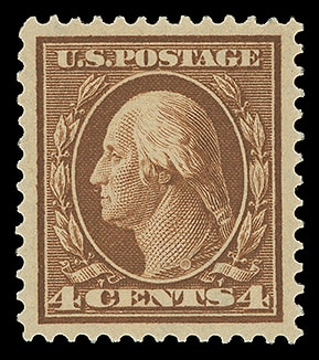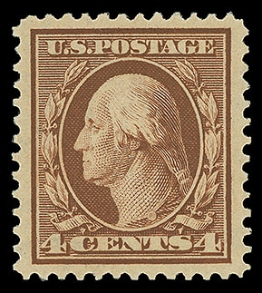 1911, 4¢ brown, S.L. watermark, o.g., never hinged, remarkablly well centered within large balanced margins, deep rich color on bright paper, an Extremely Fine to Superb gem; with 2018 P.S.E. certificate graded ( XF-SUP 95 ).