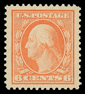 1911, 6¢ red orange, S.L. watermark, o.g., never hinged, exceptionally well centered within stunning wide margins, lustrous color, Extremely Fine to Superb jumbo; with 1992 P.F. and 2021 P.S.E. certificates, latter graded ( XF-SUP 95J ).