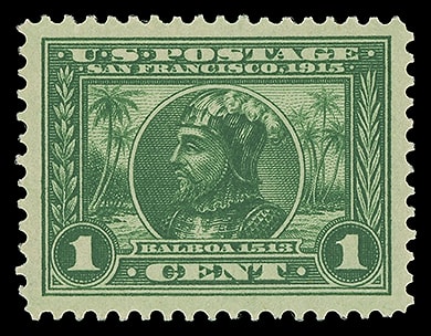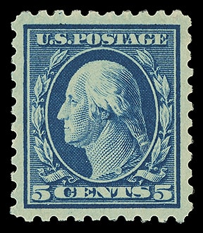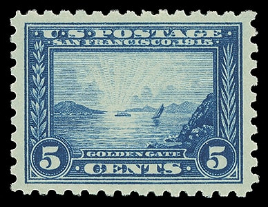 1915, 5¢ Panama-Pacific, perf. 10, o.g., never hinged, exceedingly well centered within beautifully balanced margins, strong color and impression, fresh and Extremely Fine; with 1998 P.F. and 2020 P.S.E. certificates, latter graded ( XF 90 ). Scott $400.
