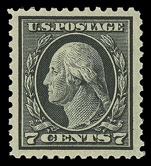 1917, 7¢ black, perf. 11, o.g., never hinged, outstanding centering within large beautifully balanced margins, bright and fresh, Extremely Fine to Superb; with 2008 P.S.E. certificate graded ( XF-SUP 95 ).