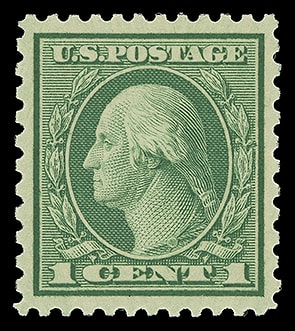 1913, 1¢ Panama-Pacific, perf. 12, o.g., never hinged, remarkably well centered with strong color and impression on bright paper, fresh and Extremely Fine to Superb; with 2011 P.S.E. certificate graded ( XF-SUP 95 ).