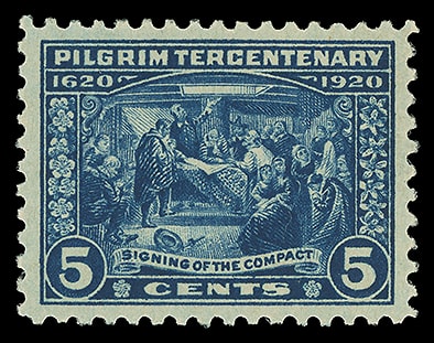 1920, 5¢ Pilgrim, o.g., never hinged, exceptionally well centered, rich color, an Extremely Fine to Superb gem; with 2005 P.F. certificate graded ( XF-SUP 95 ).