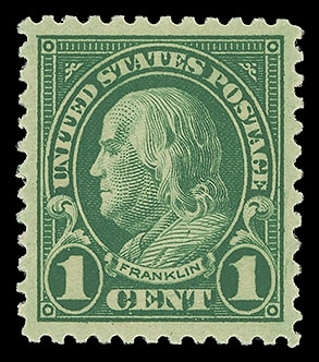 1923, 1¢ Franklin, o.g., never hinged, remarkably well centered with rich color, post office fresh and Extremely Fine to Superb; with 2013 P.F. certificate graded ( XF-SUP 95 ).