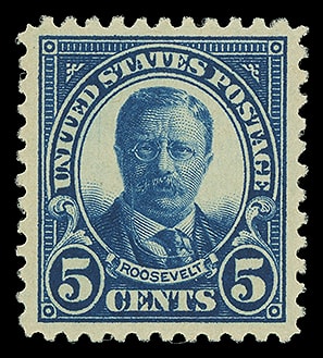1922, 5¢ Roosevelt, o.g., never hinged, beautiful centering, post-office fresh, Extremely Fine to Superb; with 2007 and 2021 P.S.E. certificates, both graded ( XF-SUP 95, SMQ $225 ).