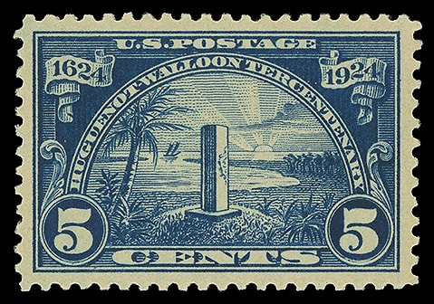 1924, 5¢ Huguenot-Walloon, o.g., never hinged, beautiful centering, intense color and impression, Extremely Fine to Superb; with 2006 P.S.E. certificate graded ( XF-SUP 95 ).