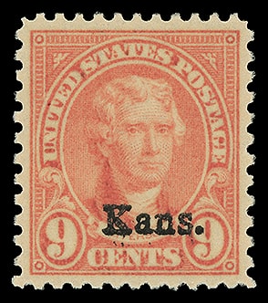 1929, 9¢ Kans., o.g., never hinged, extraordinarily well centered within beautifully balanced margins, vivid color, fresh and Extremely Fine to Superb gem; with 2020 P.S.E. certificate graded ( XF-SUP 95 ).