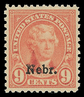 1929, 9¢ Nebr., o.g., never hinged, exceptionally well centered within beautifully balanced margins, brilliant color on fresh paper, Extremely Fine to Superb; with 2011 P.S.A.G., 2013 P.F. and 2021 P.S.E. certificates, first two graded ( XF-SUP 95 ). Scott $70.