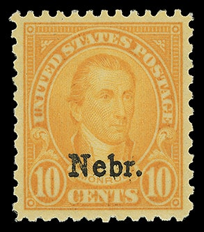1929, 10¢ Nebr., o.g., never hinged, uncharacteristically wide and well-balanced margins, vibrant color, Extremely Fine to Superb jumbo; with 1999 P.F. and 2020 P.S.E. certificates, latter graded ( XF-SUP 95J ). Scott $180.