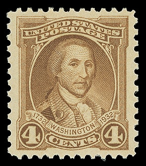 1932, 4¢ Washington Bicentennial, o.g., never hinged, perfectly centered with wide margins, a Superb gem; with 2021 P.S.E. certificate graded ( SUP 98 ).