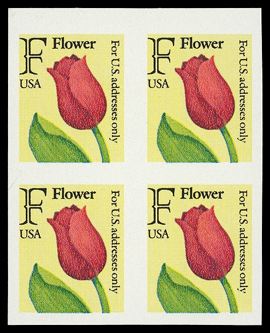 1991 (29¢) "F" Tulip, imperf pair, o.g., never hinged, large margins, post office fresh and Extremely Fine.