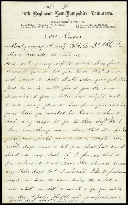 This was probably written by Captain James Perry, Fifth New Hampshire Regiment, of Lebanon N.H. to either mother or wife. Capt. Perry was killed in action at Fredericksburg Md. on December 13, 1862.Realized: $100