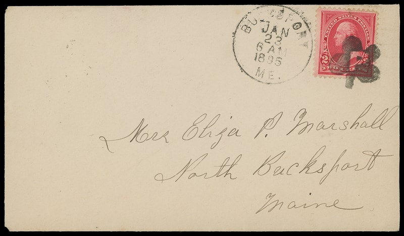 Four-Leaf Clover with "P", perfect neat strike duplexed with "Bucksport Me. Jan 23, 1895" cds ties 2¢ carmine (279B) on cover to North Bucksport Me., Extremely Fine.
