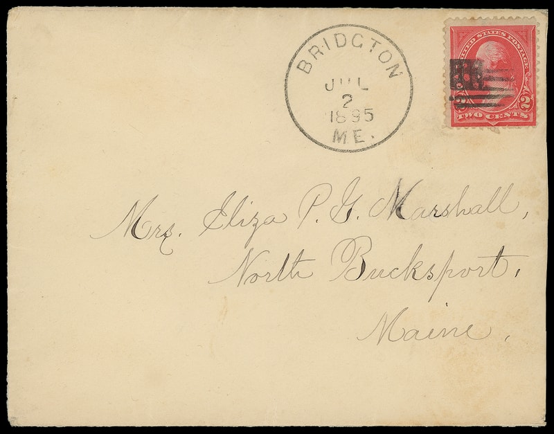Flag, duplexed with "Bridgton Me. Jul 2, 1895" cds cancels 2¢ rose carmine (279Bc) on cover to North Bucksport Me.; reduced slightly at right, Very Fine.