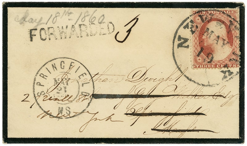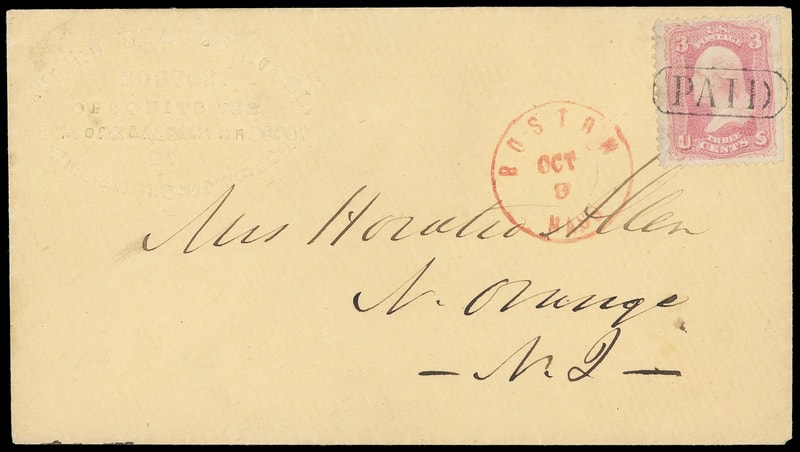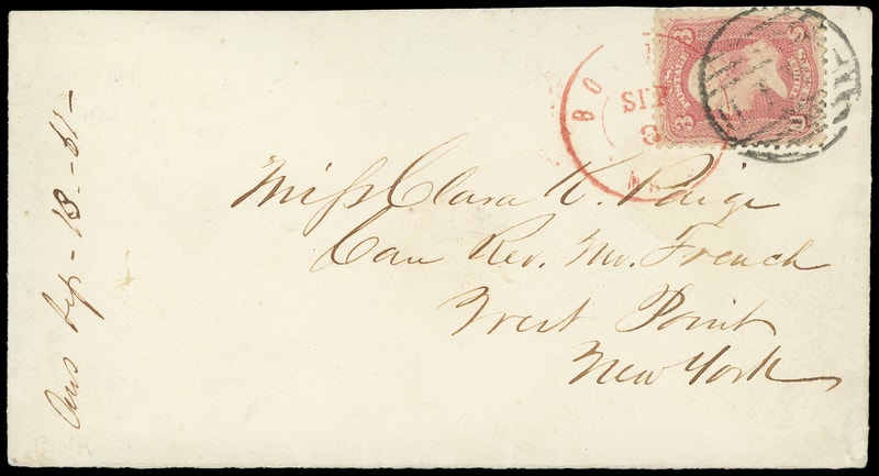 1861, 3¢ rose pink, good color, tied by "Paid" in grid and partial red "Boston Ms Sep 3" cds to West Point N.Y., 1861 docketing; reduced slightly at top and partial flap, F.-V.F.; with 1989 P.F. certificate.