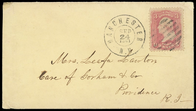 1861, 3¢ rose pink, rich color, canceled by neat open circular grid duplexed with "Rochester N.H. Sep 24, 1861" cds to Providence R.I., Very Fine; with 2021 P.F. certificate.