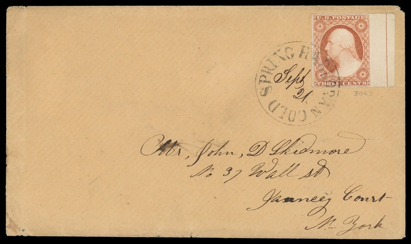 References: Illustrated in Jim Allen's "The 3¢ 1851 Stamp Plates: Color Changes and Earliest Documented Uses", Chronicle 266, May 2020, p. 144, fig. 13.Realized: $350