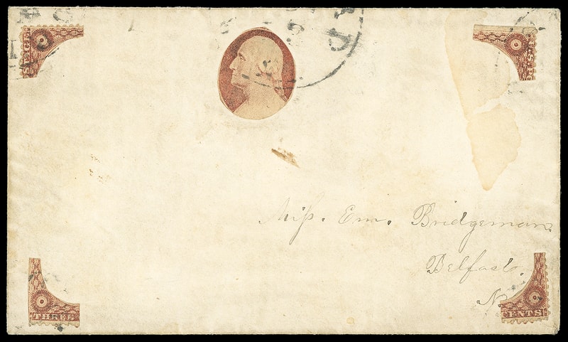 Scott No. 9 ◦ ◦ ◦ ◦ ◦ $300 as used stamps.Realized: $350