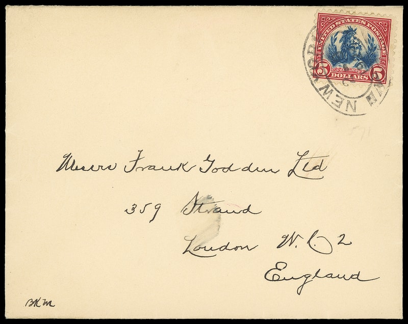 1923, $5 America, tied by "New York, 2, 2 - 4, 1924" supplementary mail double-oval on philatelic cover to Frank Godden Ltd, London, England, Very Fine.