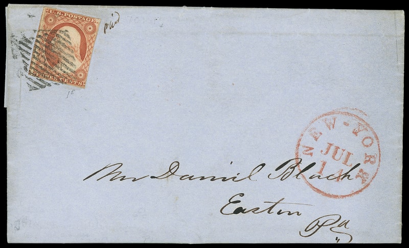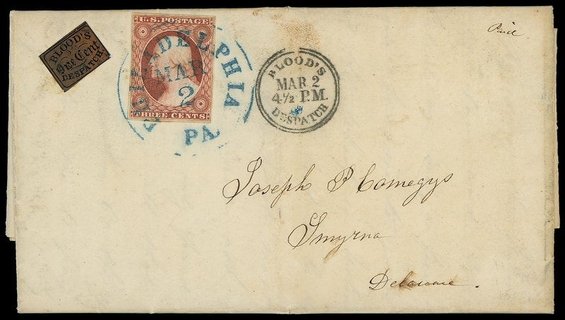 1852-57, 3¢ dull red - Postal History, better group of 27 covers with mostly single frankings including some fancy cancels, railroads, waterways, etc., note 11A used with Bloods #15L13 to Smyrna Del., "N.York & New Haven R.R." railroad use, "Atlantic & St. Lawrence R.R." railroad use, ms. "Quartzbury" use with #11A pair, Canton Miss. negative star, New Orleans "Way" uses, Bethlehem Pa. red grid use, Downieville Cal. grid cancel, Milford Ct. circle of wedges, etc., generally clean and Very Fine group.