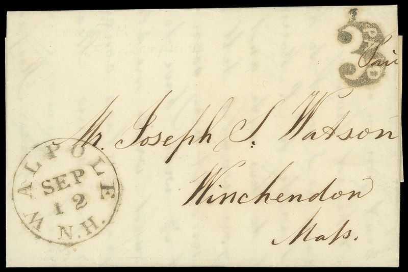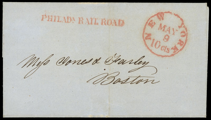 Stampless Postal History, better group of 38 with many better uses and ratings including railroads, locals, foreign mail, etc., better noted 1851 New York red "Philada. Rail Road" straightline, Walpole N.H. "3" with neg. "Paid", New York "U.S. Mail, City Delivery, 1" carrier use, Lowell Mich. fancy "Paid 3", Newport N.Y. fancy "Paid 3"; generally well struck markings and nice condition, fresh and Very Fine group.