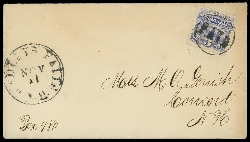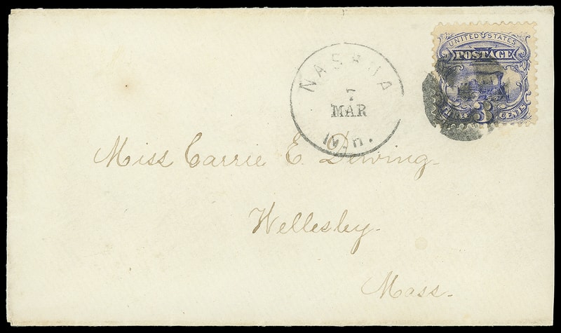 1869, 3¢ ultramarine - Postal History, nice group of 18 covers including some fancy cancels, color cancels, nicely centered, note Nashua N.H. negative Square & Compass, "Paid" in Circle,Hazleton Pa. honeycomb, Carlisle Pa. red cancel and "Advertised", Fort Wayne large three-ring target, Bloomington Ill. negative star of david, etc., overall clean and Very Fine group.