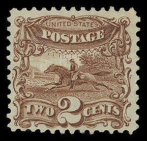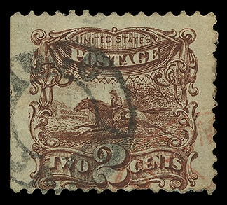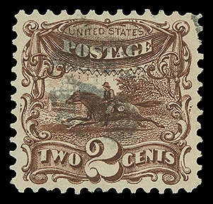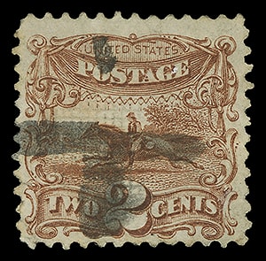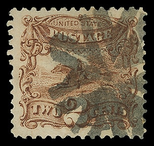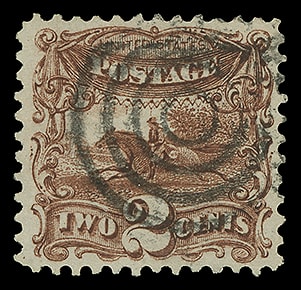 1869, 2¢ brown, well centered with balanced margins, exceptionally fresh with dark shade and strong impression, lightly canceled, choice and Extremely Fine to Superb, a lovely stamp.