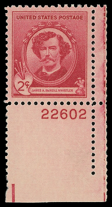 1940, 2¢ Whistler, o.g., never hinged, lower right corner margin plate 22602 single, Superb; with 2006 P.S.E. certificate graded ( SUP 98 ). Scott No. 885.