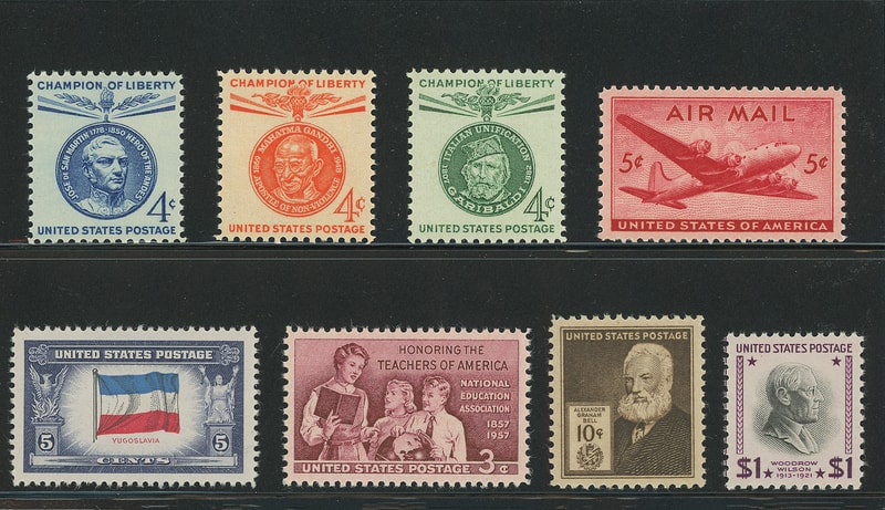 1995, Comic Strip Classics, miniature sheet of 20, group of 13 mint never hinged stamps with 3¢, 4¢, 5¢, 10¢, commemoratives, mainly 1940s-1950s, 5¢ airmail, $1 Prexie #832, what makes these GEMS perfect are their intact, boxy-perfed corners, all Extremely Fine to Superb gems, Selected from 100s of sheets of stamps.