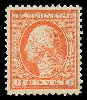 1909, 6¢ red orange, D.L. watermark, full o.g., barest trace of hinge, beautifully centered with vibrant color, fresh and Very Fine to Extremely Fine; with 2016 P.F. certificate graded (VF-XF 85, SMQ $80).