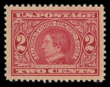 1909, 2¢ Alaska-Yukon, o.g., never hinged, exceedingly well centered within large balanced margins, Extremely Fine to Superb; with 2017 P.S.A.G. certificate graded ( XF-SUP 95, SMQ $105 ).