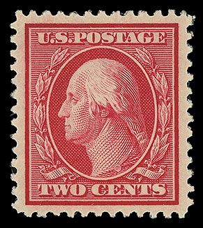 1910, 2¢ carmine, S.L. watermark, o.g., never hinged, exceedingly well centered, rich color, Extremely Fine to Superb; with 2006 P.S.E. certificate graded ( XF-SUP 95, SMQ $145 ).