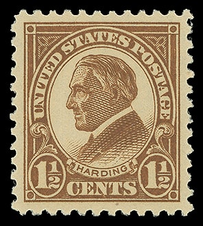 1925, 1½¢ Harding, o.g., never hinged, choice centering, brilliant color with crisp impression, particularly fresh and Extremely Fine to Superb; with 2018 P.S.E. certificate graded ( XF-SUP 95, SMQ $115 ).