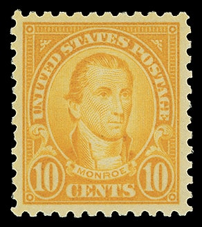 1923, 10¢ Monroe, o.g., never hinged, beautifully centered, radiant color, fresh and Very Fine to Extremely Fine; with 2010 P.F. certificate graded (VF-XF 85, SMQ $85).