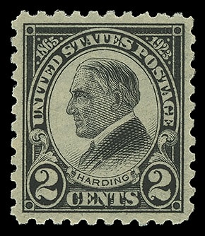 1923, 2¢ Harding, rotary press printing, o.g., never hinged, exceptionally well centered within balanced margins, prooflike color and impression, an Extremely Fine to Superb gem; with 2011 P.S.E. certificate graded ( XF-SUP 95, SMQ $145 ).