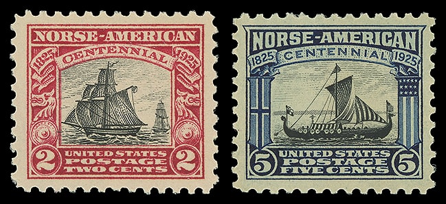 1925, Norse-American complete, set of 2, o.g., never hinged, each exceedingly well centered with rich colors, Extremely Fine; with 2007 P.S.E. (620) and 2006 P.S.E. (621) certificates, both graded ( XF 90 ). Scott No. 620-621.