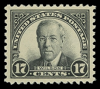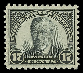 1925, 17¢ Wilson, o.g., never hinged, exceedingly well centered, detailed impression, fresh and Extremely Fine to Superb; with 2014 P.S.E. certificate graded ( XF-SUP 95 ). Scott No. 623.