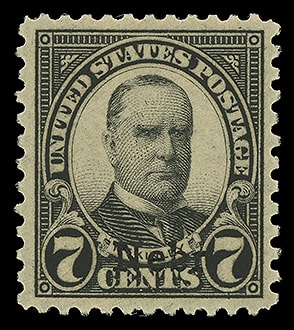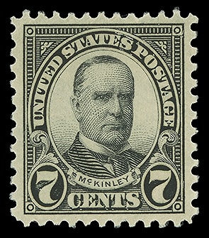 1927, 7¢ McKinley, rotary press printing, o.g., never hinged, beautifully centered with proof-like impression and color, fresh and Extremely Fine to Superb. Scott No. 639.